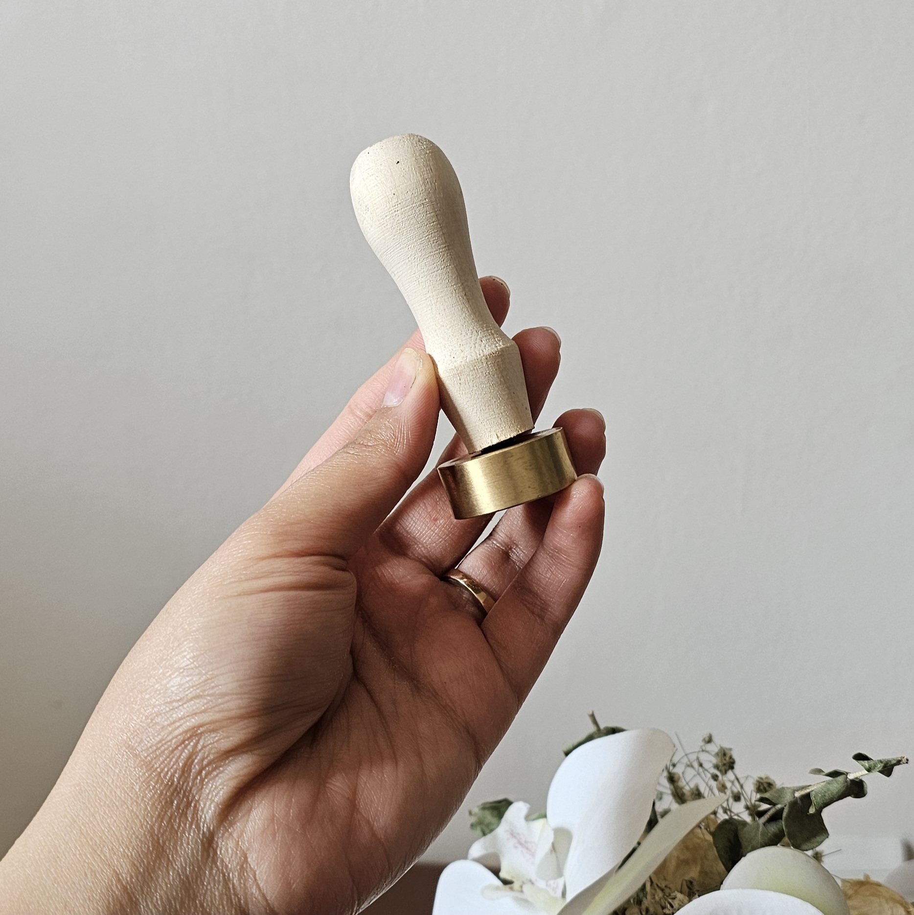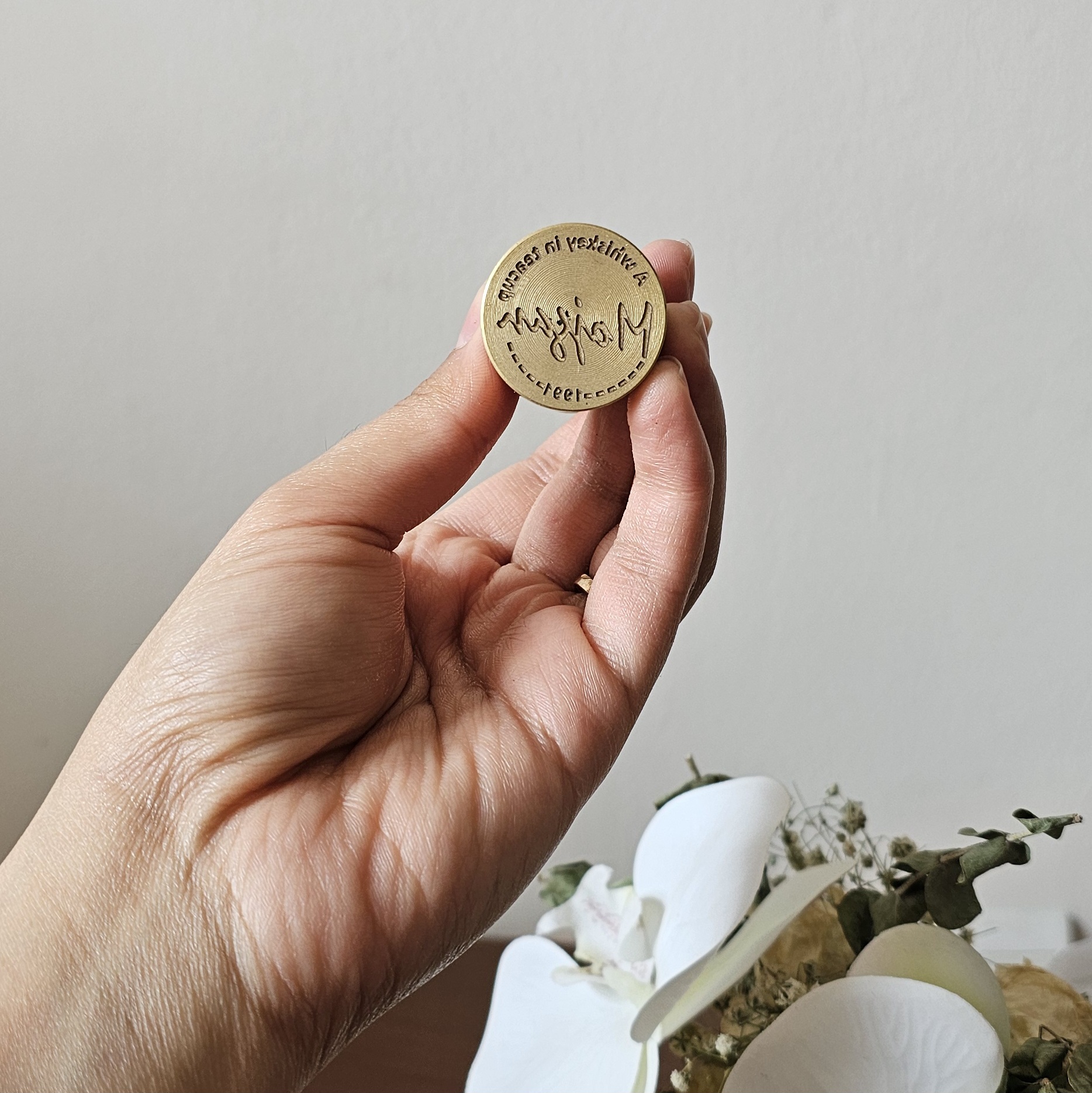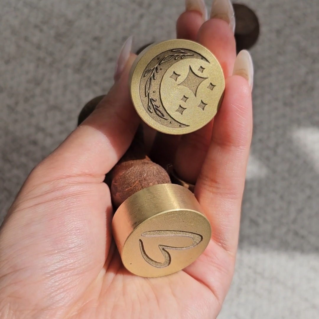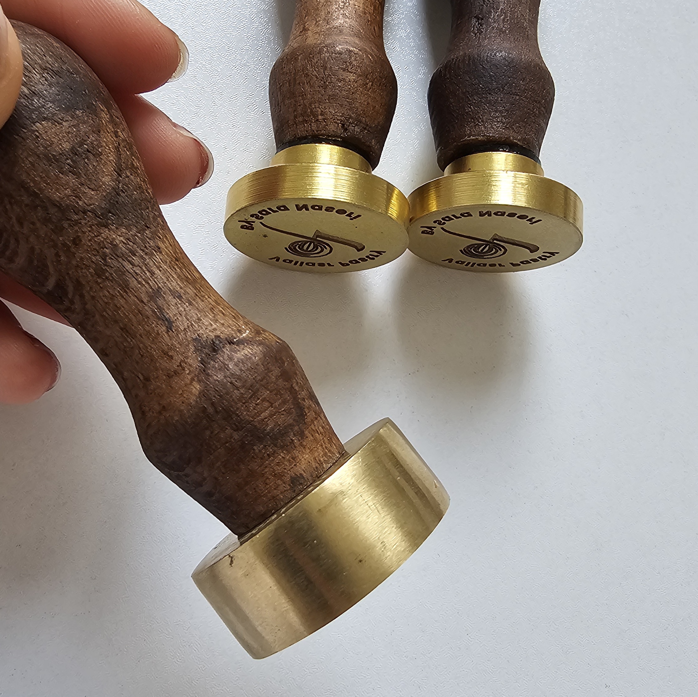 جنس مهر برنجی هست با طرح دلخواه حکاکی انجام میشه روش، هرچه طرح خطوط ضخیم تری داشته باشه خروجی نهایی واضح تر خواهد بود، رنگ دسته چوبی (تیره یا روشن)براساس موجودی انبار تعیین میشه و انتخابی نیست.